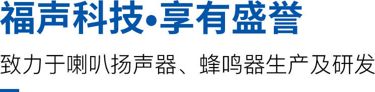 泰州福聲電子科技有限公司主要生產聲學器件,有著豐富的研發生產銷售經驗, 我們主要生產喇叭、揚聲器、壓電式蜂鳴器、電磁式蜂鳴器、貼片式蜂鳴器等電聲元器件。